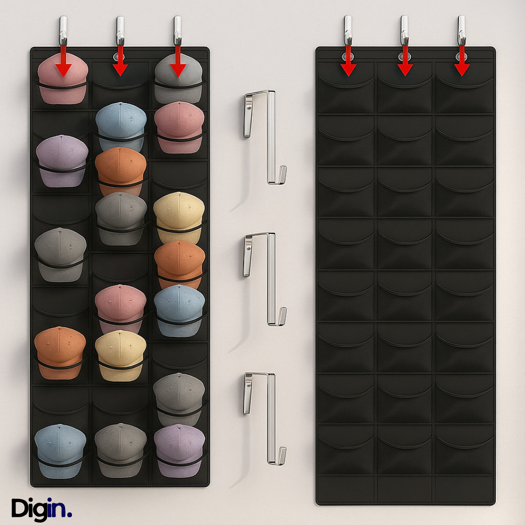 ✅ Ahorra espacio – cuelga hasta 16 gorras en una sola puerta.